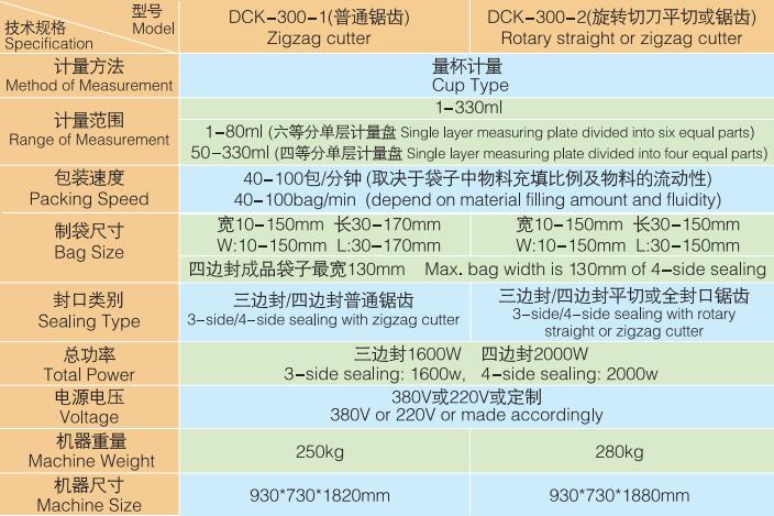 DCK-300-1/ DCK-300-2 平三邊封/四邊封顆粒包裝機(jī)